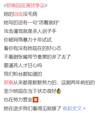 也有粉丝暗示,郑爽那十年去饱受收集暴力,短短的“我没有争气,我在世便好”几个字只是讲尽了本人的心伤取无法罢了,真正在出须要过分解读。