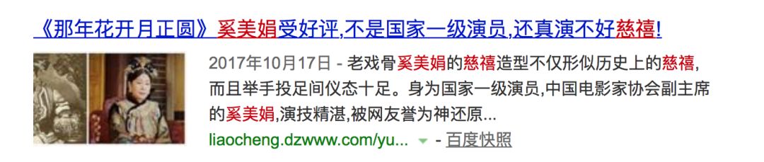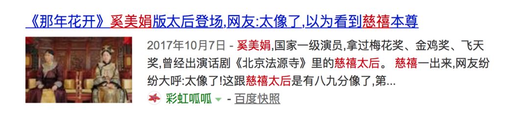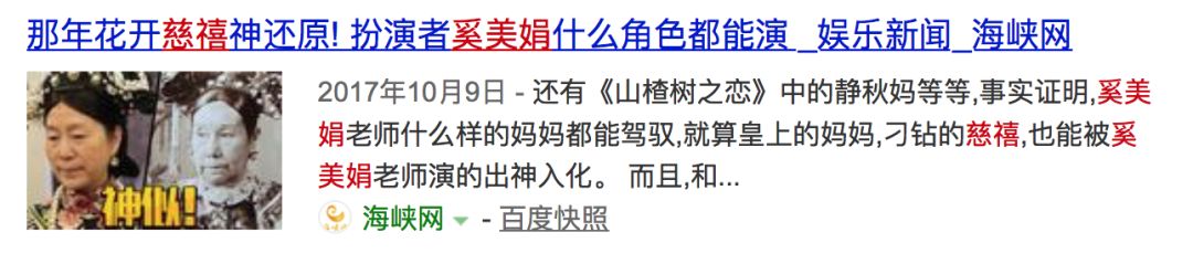 奚好娟教师正在《那年花开月正圆》扮演降易的慈禧太后,固然只要两散没有到的戏份,但她扮演的慈禧一进场,不雅寡们吓了一跳,几乎战慈禧太像了,她粗湛的演技霎时俘虏了不雅寡战媒体们的心。