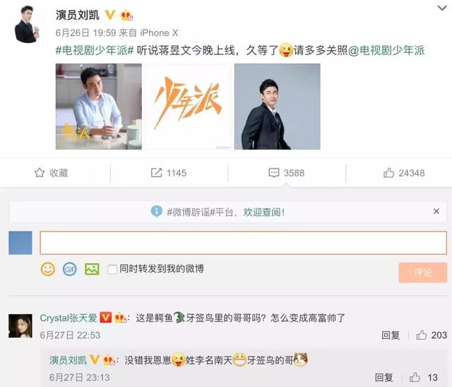 正在取张天爱、陈柏霖协作的电视剧《鳄鱼取牙签鸟》中,刘凯扮演李北天。