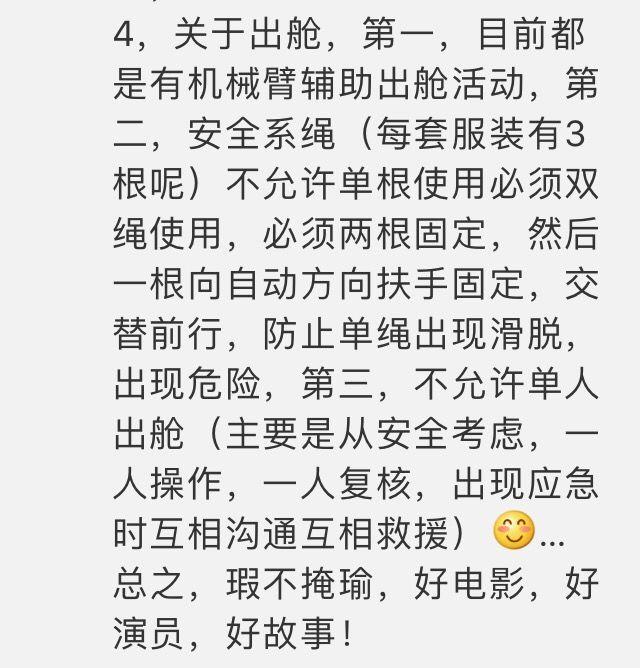可是正直的航天人正在表达对影戏的喜欢之情之余也对剧情中一些小细节提出差别的观点。