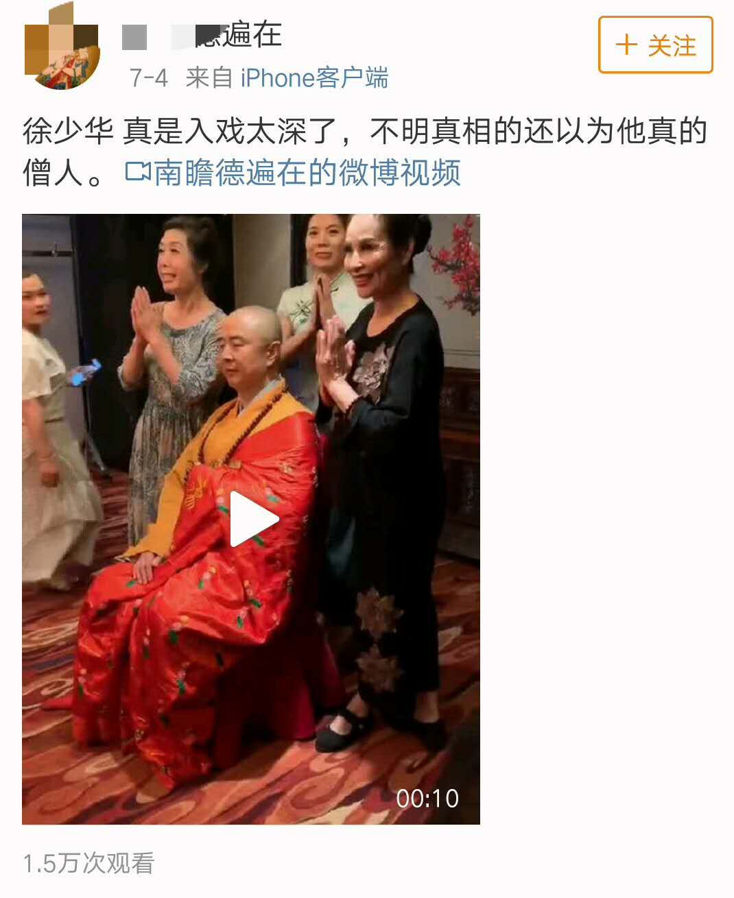 远日,“唐僧”缓少华列席某个举动,他穿戴一身法衣,脖子上挂着佛珠。看到那些,有网友道:缓少华实的进戏太深了,没有明本相的借觉得他实的是和尚。