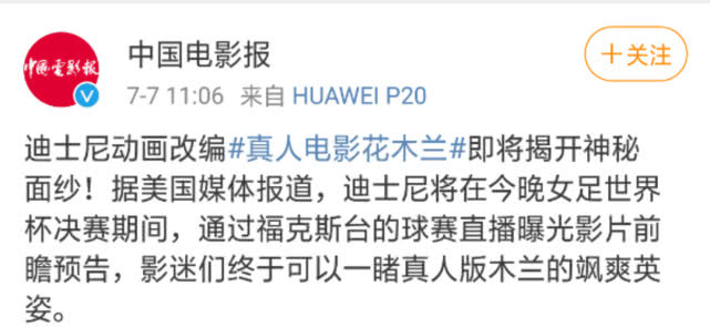 近来,《花木兰》的预报片行将公布尾款预报,按照最新动静,《花木兰》的预报片将正在女足天下杯时期初次播出,尾收预报片为1分32秒。除有刘亦菲扮演的“花木兰公主”中,借有李连杰、巩俐、甄子丹等寡明星出演。