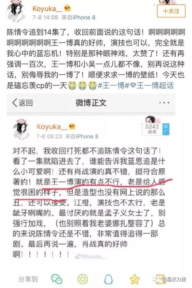 那回女他的上位势头更猛,比王一专圈粉的速率更快,流量如今也要更年夜,不只挨败一寡先辈排正在wuli权利榜那周男演员的TOP1。
