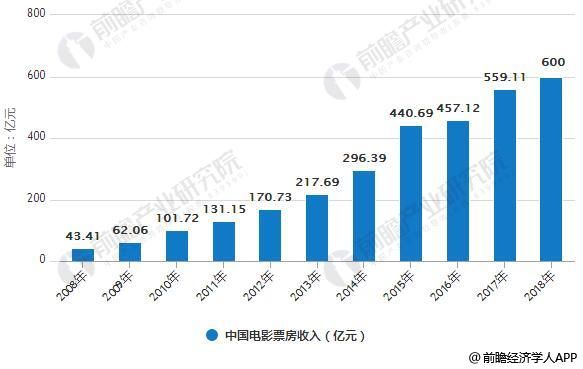 按照前瞻财产研讨院公布的《影戏财产市场前瞻取投资计谋计划阐发陈述》数据统计,2008年到2018年,中国影戏总票房从43.41亿涨至600亿元,是十年前的约13倍,并成为仅次于好国的齐球第两年夜影戏票仓。