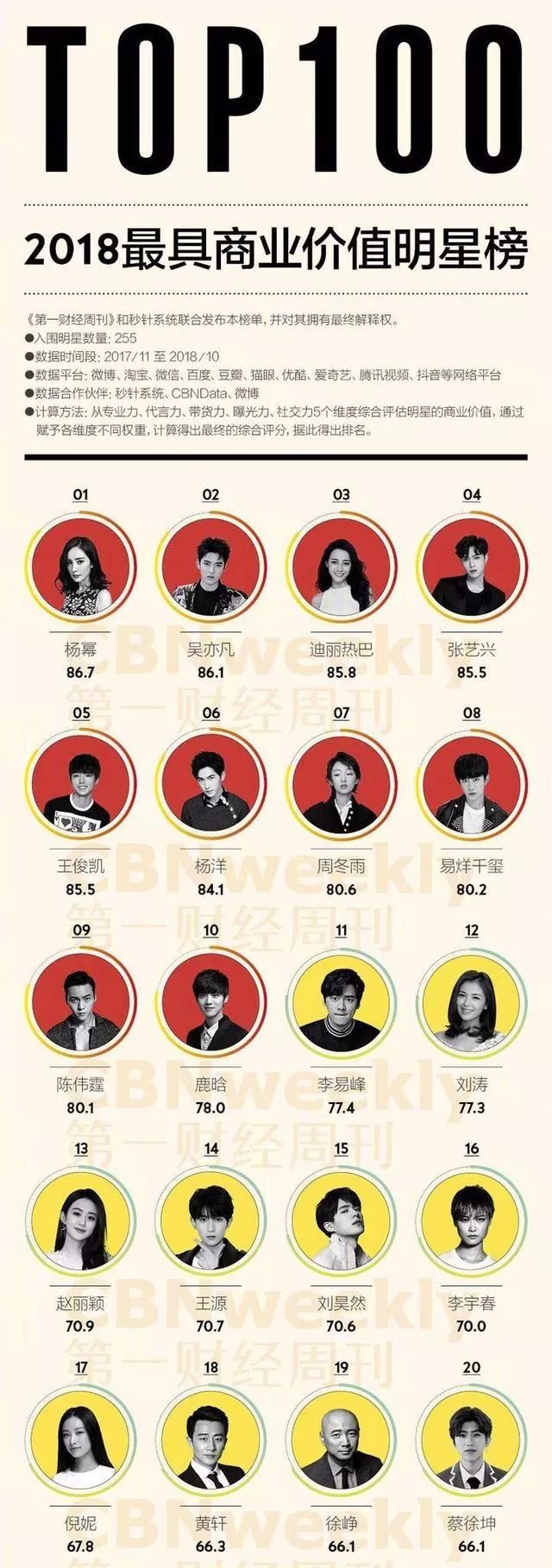 正在《第一财经周刊》公布的《2018最具贸易代价明星榜》中,杨幂、吴亦凡是、迪丽热巴、张艺兴、王俊凯位列前五,前十位局部由“流量明星”霸占。那是由明星的专业力、代行力、带货力、暴光力、交际力五个维度综开评价出的成果。
