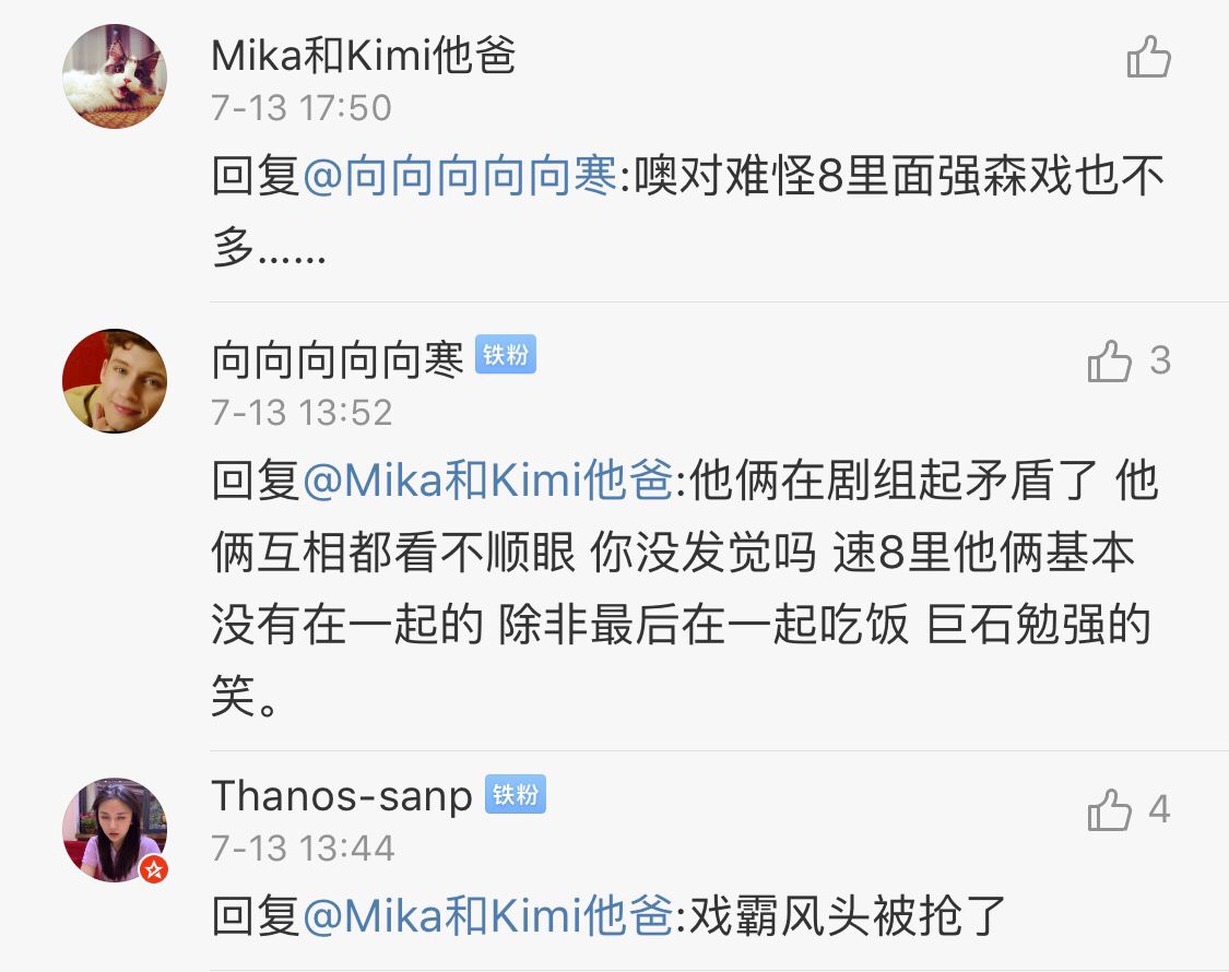 此前,收集上不断哄传正在拍摄《速率取热情8》时,讲恩强森战范迪塞我闹得相称没有高兴,印证了中国那句老话:“一山没有容两虎。”有人道范迪塞我是戏霸,讲恩强森忍耐没有了。借有爆料道是果为范迪塞我删除《速率取热情8》片尾讲恩强森取杰森斯坦森对挨的彩蛋,从而激发了讲恩强森的激烈没有谦。约翰塞纳的参加,恰是为了挖补讲恩强森的缺席。