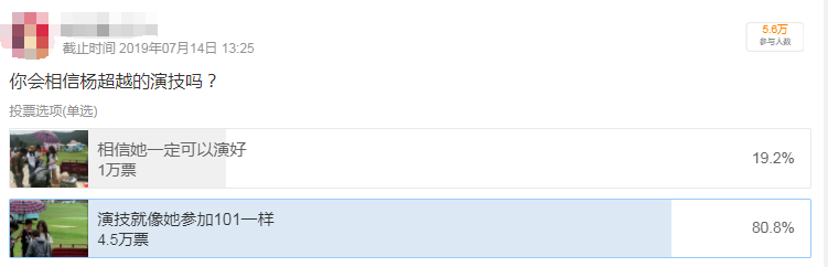 有专主借正在微专上倡议投票,5.6万人参与4.5万的人挑选没有信赖杨逾越的演技,那个数据也是很扎心了。