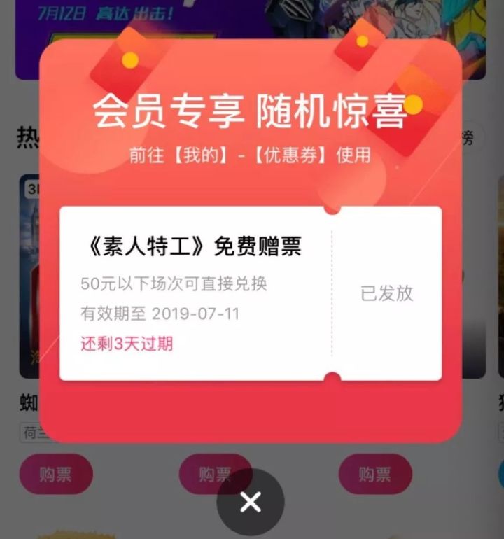 7月9日,壹娱不雅察(ID:yiyuguancha)从多个动静源证明,淘票票年夜范畴背年夜量会员用户免费赠予了《素人奸细》影戏票。用户面开淘票票APP后,体系主动推收影戏票兑换券。今朝去看,淘票票从青铜到乌钻各级此外会员用户均有支到免费影票。