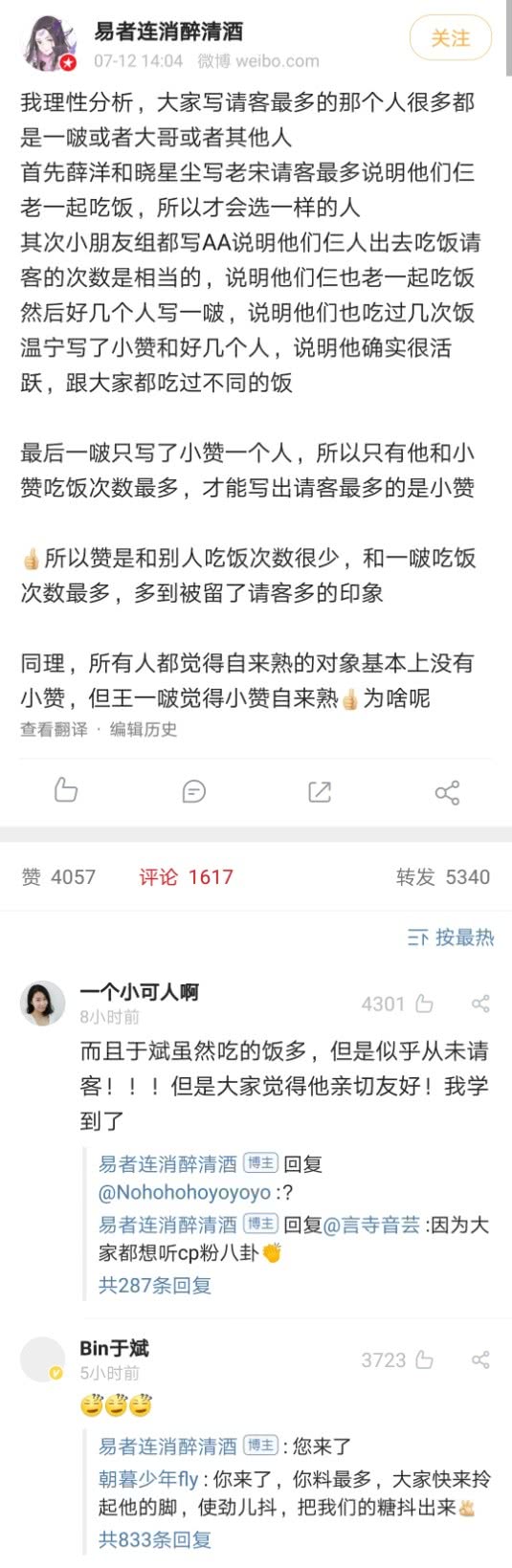 也正如批评中另外一位网友所道……于斌跟各人皆吃过饭却从没有宴客,可各人借是以为他密切友爱……那才是实凶猛!