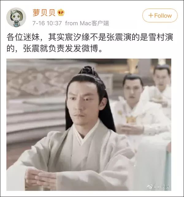 许多网友正在今天(7月15日)之前,借是张震的颜饭,但是《宸汐缘》播出后,他们暗示:一时分没有浑是倪妮的配音更上头,借是张震的头套更上头?