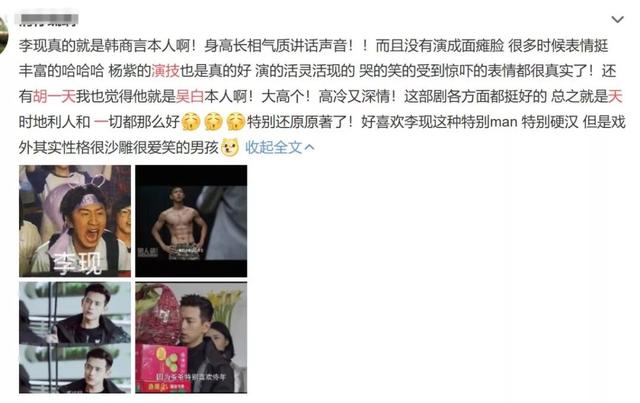 而扮演年夜魔王韩商行的李现,从第一散播出以后眼神、台词被很多网友吐槽,到现在成为许多剧迷新“墙头”,成为年夜型“实喷鼻”现场,许多网友暗示李现的台词偶然候听起去固然有些槽面,但团体而行完成度很好,几乎便是“韩商行本行”。