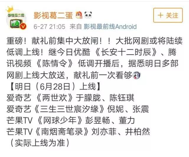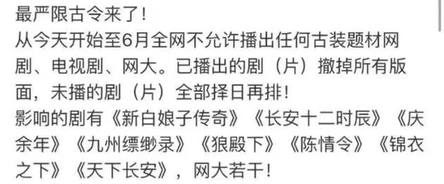 从6月尾开端,之前哄传的限古令仿佛有了紧动的迹象,头部时装剧纷繁返来,那内里包罗很多已经被撤档的做品。