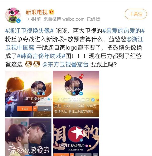 近来网友们发明,东圆卫视战浙江卫视为了掰头《敬爱的,酷爱的》抢不雅寡也是拼了,连民微电视台台标皆没有要了,间接放上男女配角的照片。接下去便为各人捋捋全部变乱黑热化历程。