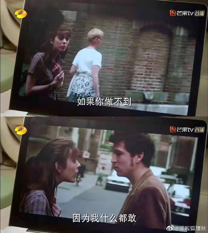 齐铭看影戏那段,刚好演到男女主又开端新一轮的“敢没有敢”游戏,他随即给易远收了疑息,也是套用的“敢没有敢”问句:“您敢没有敢理我一下”。包罗前面胡衕内里的广告,两人照旧是用“敢没有敢”的方法停止。