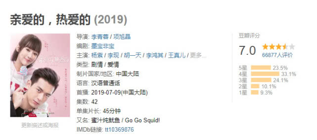 今朝《敬爱的,酷爱的》的豆瓣评分曾经7.0,比起同范例的奇像剧分数下了很多。