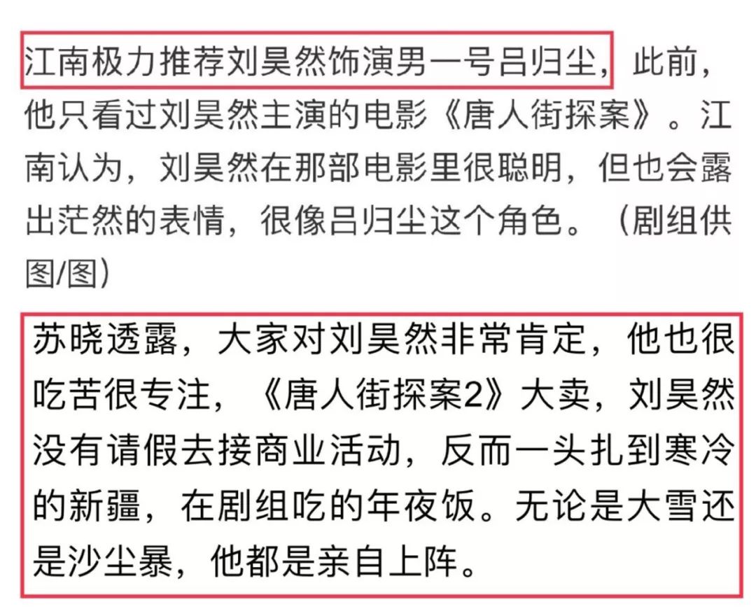 做为《九州缥缈录》的本著做者兼总编剧江北,正在最开端拔取演员时便力荐刘昊然;拍摄完毕后,不但是江北,全部剧组皆对刘昊然赐与了很下的评价。