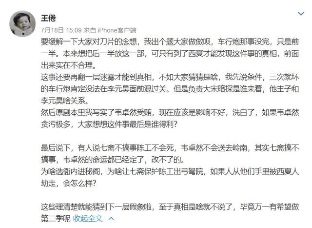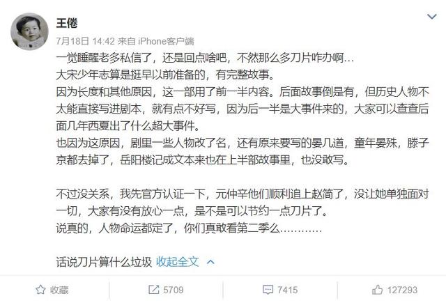 实在,自从《年夜宋少年志》结束后,编剧王倦的微专便变的非常热烈,3年出有收微专的他间接被炸出去屡次抚慰剧迷的感情,方才结束后支到剧迷刀片的他跑出去注释《年夜宋少年志》只用了全部故事的上部门。