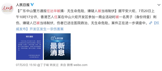 随后现场保安造服了止刺者,任达华前去本地病院便医。