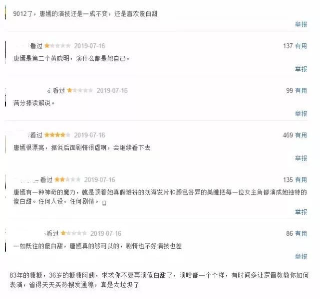 同时,也仍然有网友攻讦唐嫣的演技出甚么前进,战本来出区分,演甚么皆一个样。