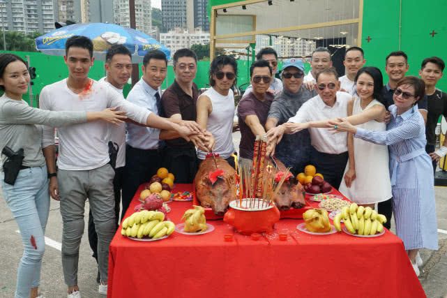 杨受成正在主演开霆锋、甄子丹和黄德斌、林国斌、谭耀文、胡子彤等一寡演员的蜂拥下上喷鼻,乞求拍摄逆利。
