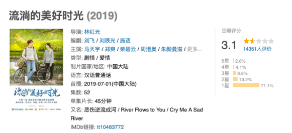 而从筹办之初便吸声很下的《流淌的美妙光阴》,正在剧情进进到后半部门时,能够道是正在网上曾经掀没有起新话题了,今朝豆瓣评分只要3.1。
