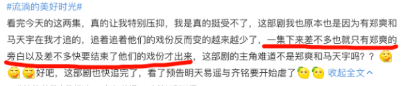 《流淌的美妙光阴》副角戏份多,以致于许多不雅寡看到一半弃剧,实的是很遗憾了。
