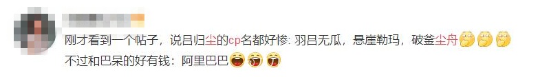 网友慨叹,刘昊然正在《九州缥缈录》里的CP名,跟他的人设一样惨:“羽吕无瓜”是吕回尘X羽然,“绝壁勒玛”是阿苏勒X苏玛,“背城借一”是吕回尘X小船公主,也便跟辱物巴呆的CP名好一面:“阿里巴巴”。