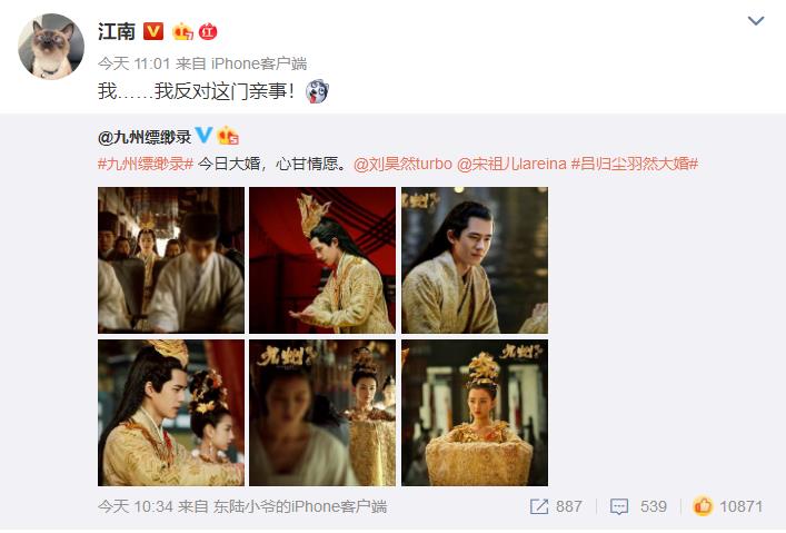 而江北做为本著做者,明天明白暗示:“我阻挡那门婚事”,但古早年夜婚做为“吕回尘X羽然”CP党最初的糖,古早必需咬着牙也磕下来。