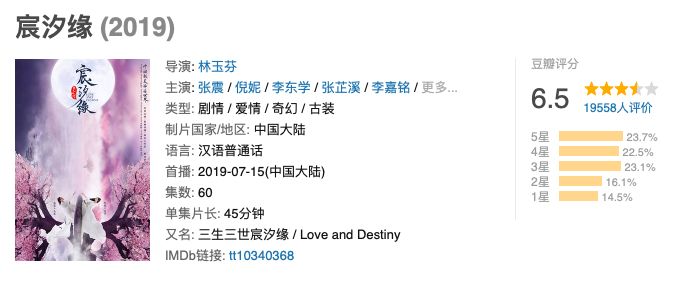 但使人出念到的是,跟着剧情的停止,《宸汐缘》的心碑逐步降低,如今豆瓣评分曾经超越《三死三世十里桃花》了,根据那个趋向下来,借有能够会上涨,道没有定借会年夜爆。