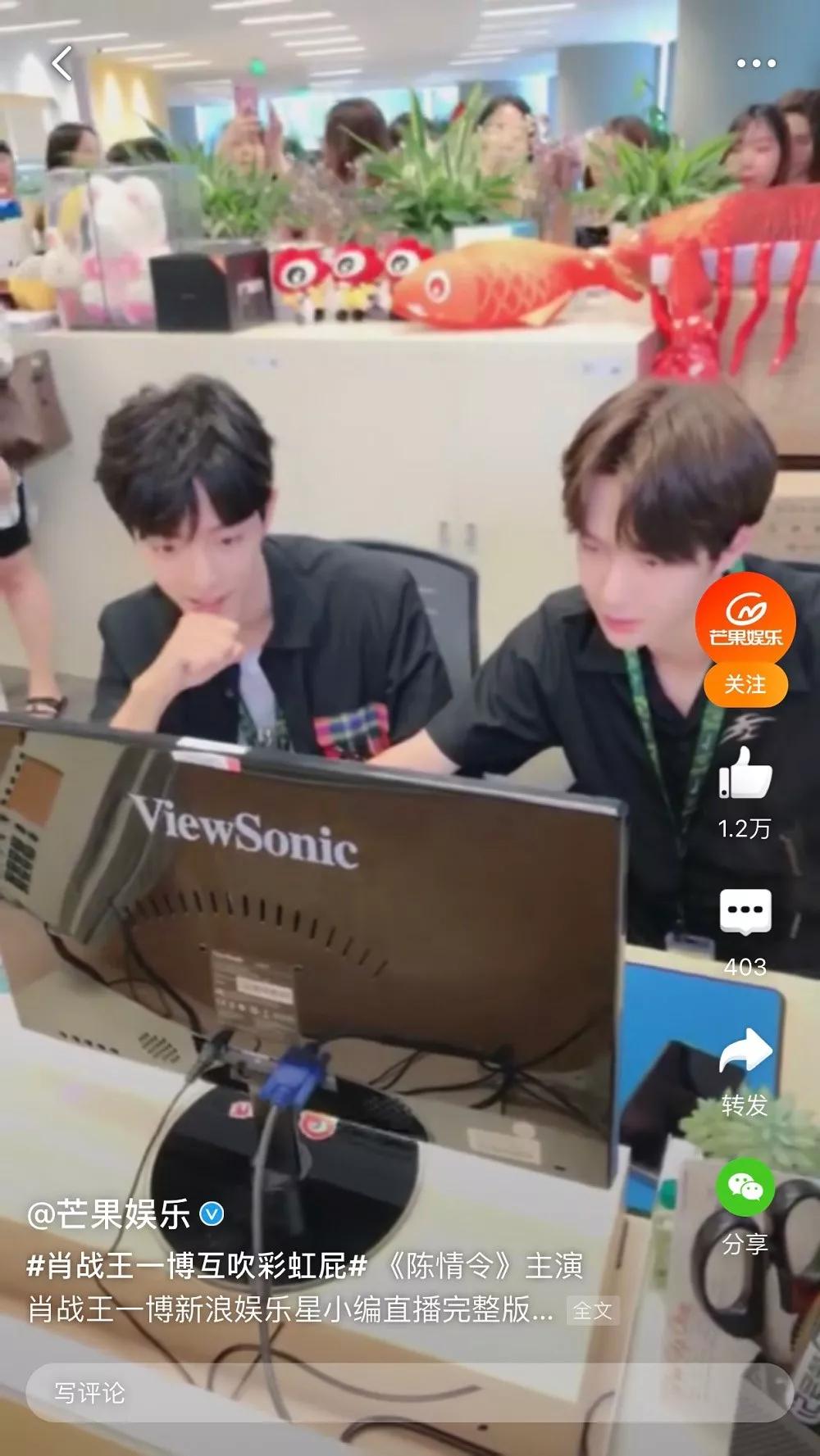 没有暂前,《陈情令》“记羡良知”肖战、王一专也曾举行“肖战王一专寒假探险记”曲播举动,演出圆行版《陈情令》、互读彩虹屁等。新浪文娱民圆数据显现,曲播不雅看人数1.25亿+,最下同时正在耳目数834万+。