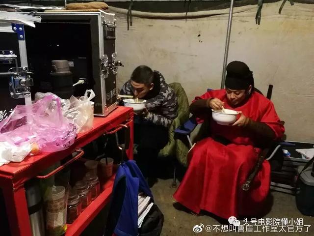 (正在片场拍摄间隙吃里)