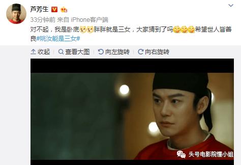 姚汝能是“暗桩”的剧情播出以后,芦芳死也第一工夫正在网上“卖萌坦率”:“对没有起,我是卧底。肥肥便是三女,各人猜到了吗,期望众人皆仁慈。”