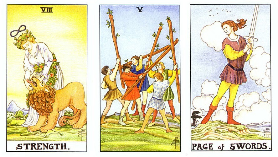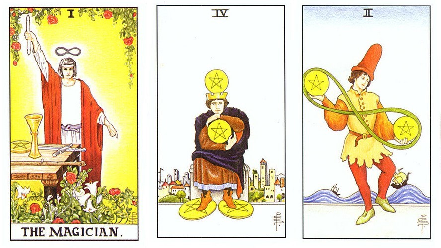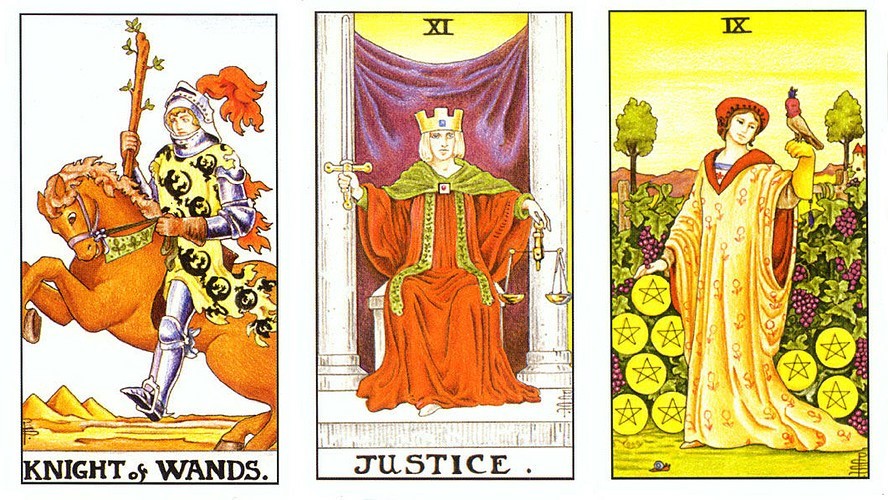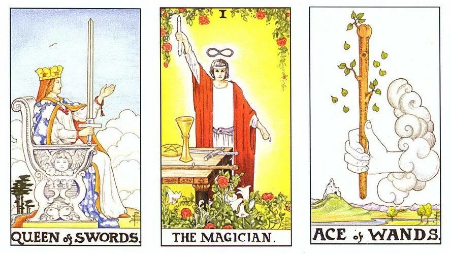 塔罗牌里:宝剑皇后、把戏师、权杖尾牌