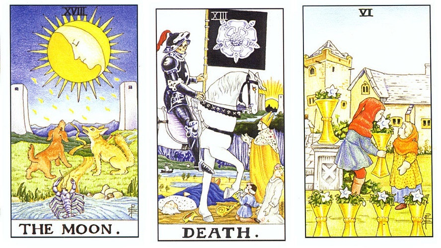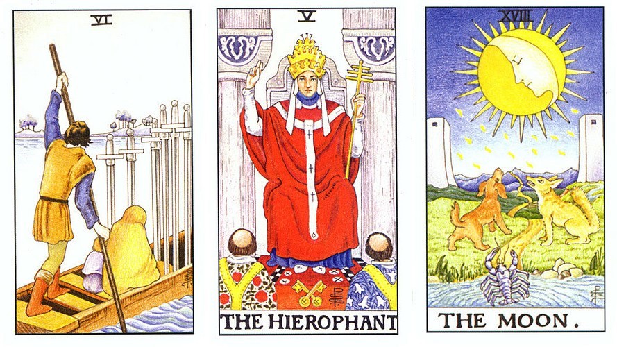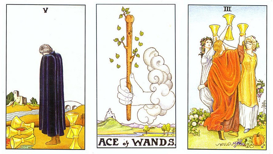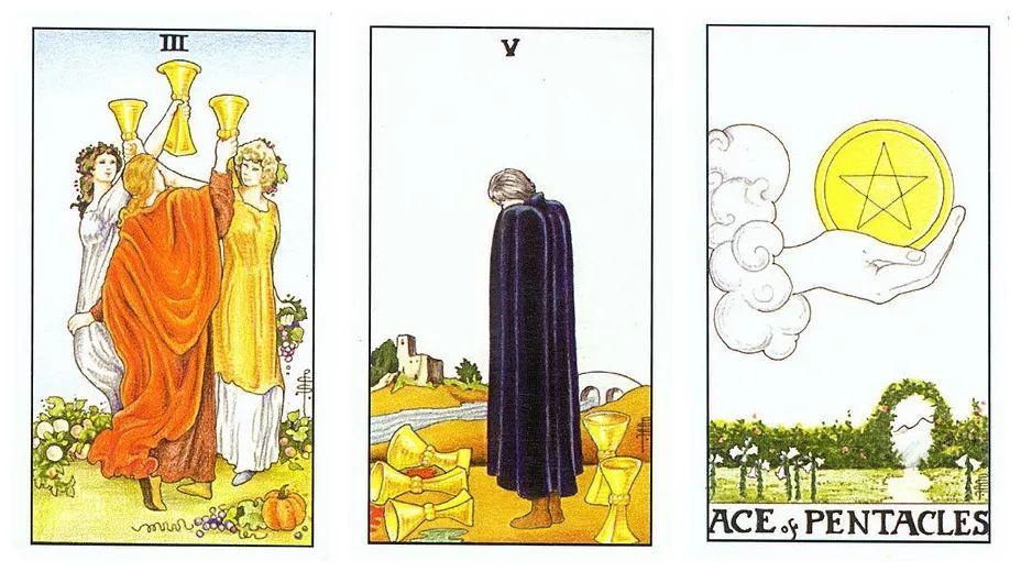 塔罗牌里:圣杯5、权杖尾牌、圣杯三