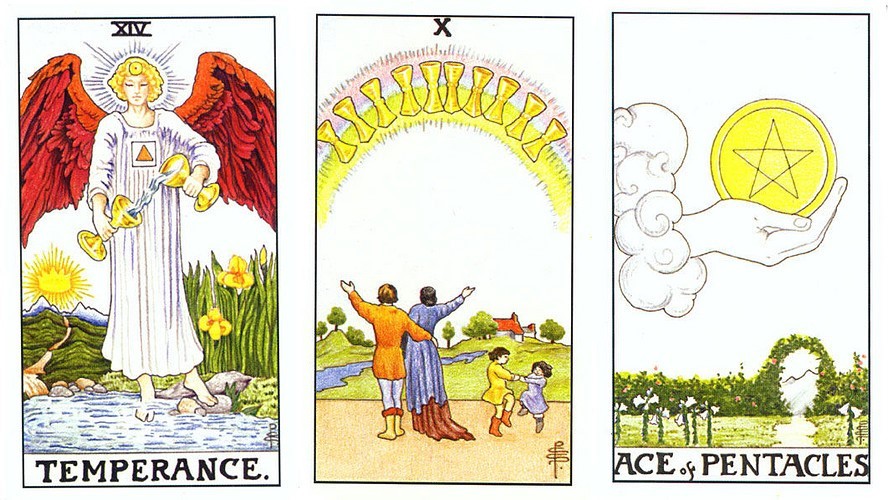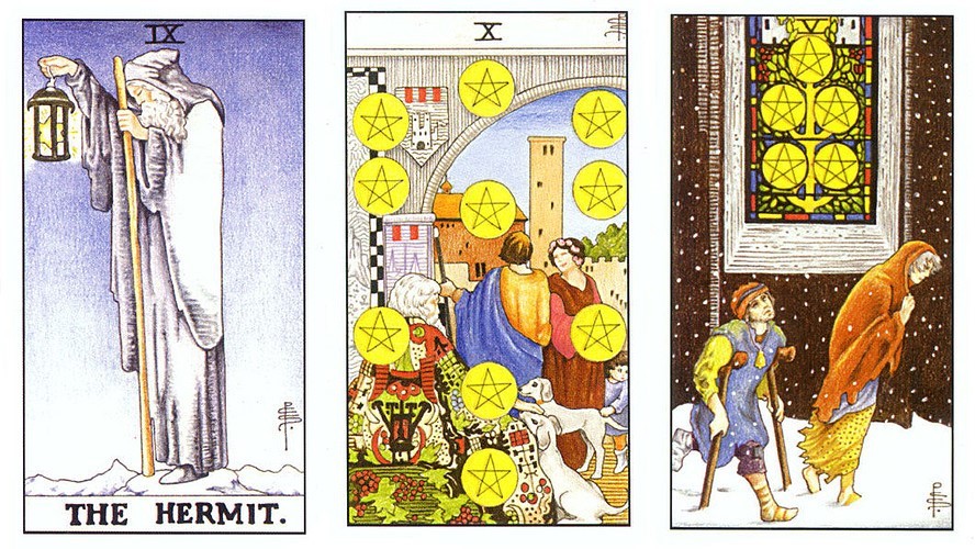 塔罗牌里:圣杯3、圣杯5、星币尾牌