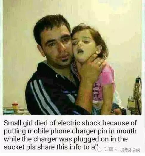2015年中网借报导了一同案例,一个小女孩把脚机充电心露到嘴里招致触电身亡。有人对此暗示量疑并亲身露了一下,感应舌头微麻,证实及格的充电心存正在电流但其实不必然有致命伤害。后经证明那是另外一变乱中的受害者照片被某些人调用,过火夸大了。