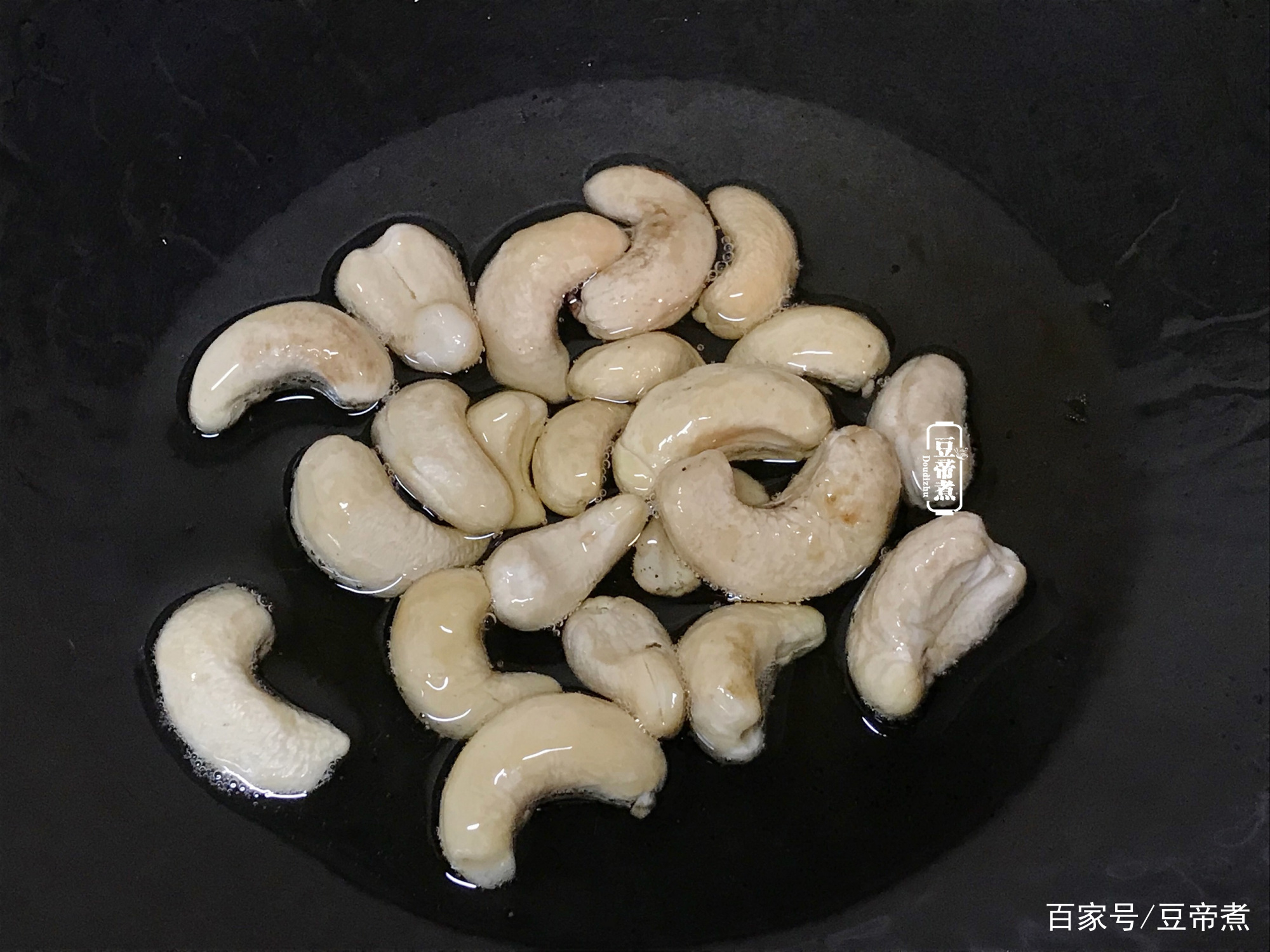 1、热油热锅放进死腰果,渐渐炸至微黄捞出备用。