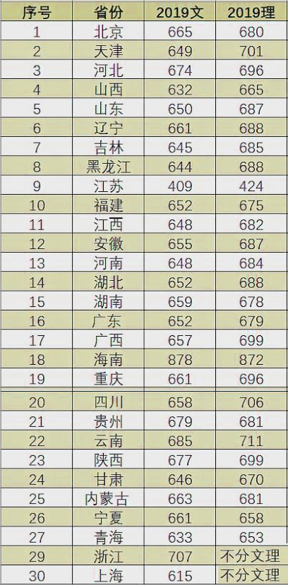 7月24日,北京年夜教招死办宣布了北京年夜教2019年登科分数线,按照宣布的数据统计,共有6省的文科分数线超越700分。别离是,天津701、海北872、四川706、云北709、西躲(汉族批次)702,浙江(新下考)700+。