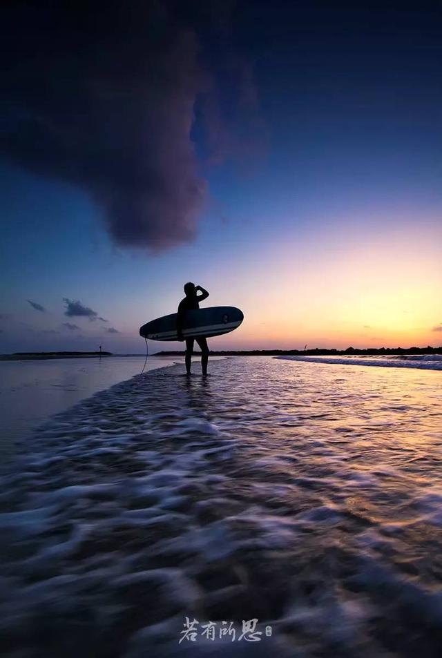 最初太阳失落进海里,借有几个滑板冲浪的人战我 ,不愿拜别。