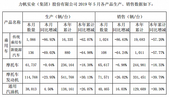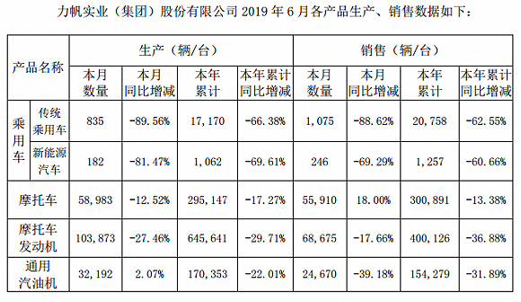 本年上半年,力帆股分宣布的产销数据显现断崖式下滑。