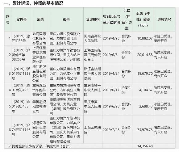 自本年6月份初次曝出控股股东1亿元包管债权背约后,那家公司费事不竭。按照统计,力帆股分远12个月内已表露的乏计发作的诉讼(仲裁)涉案金额已达14.23亿元(此中:已思索提早付出的利钱及背约金、诉讼费等)。别的,借有工场汽车消费线已歇工数月。