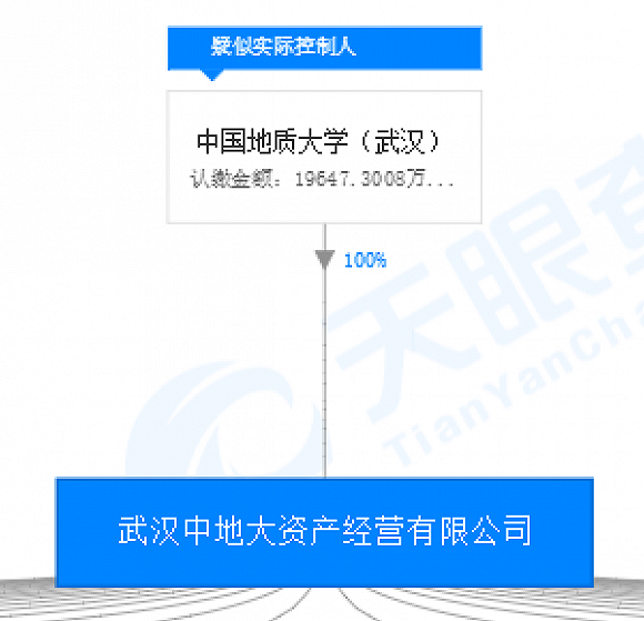 再进一步背上查,武汉中天年夜资产运营有限公司由中国天量年夜教(武汉)100%持有。武汉光谷财产投资有限公司则是湖北省科技投资团体有限公司的齐资子公司。而湖北省科技投资团体有限公司则为武汉东湖新手艺开辟区办理委员会持股91.52%的控股子公司。