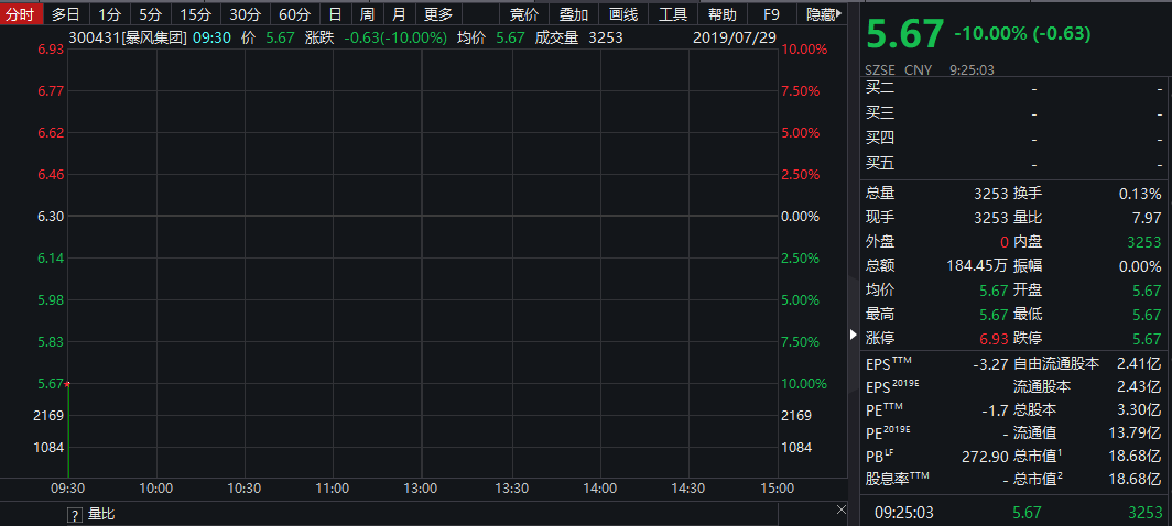 2019年7月29日,狂风团体开盘跌停,股价报5.67元/股。