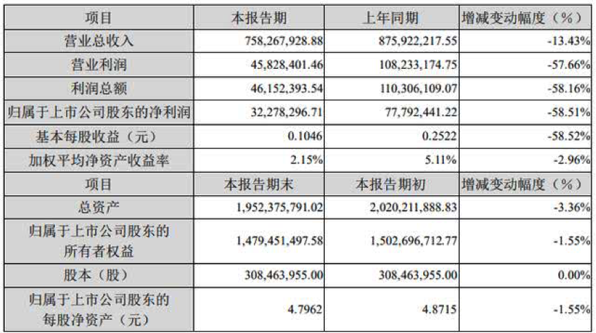 7月26日,齐散德公布2019 年半年度功绩快报显现,2019 年上半年,公司停业利润 0.46 亿元,同比降落 57.66%;回属于上市公司股东的净利润 0.32 亿元,同比降落 58.51%。