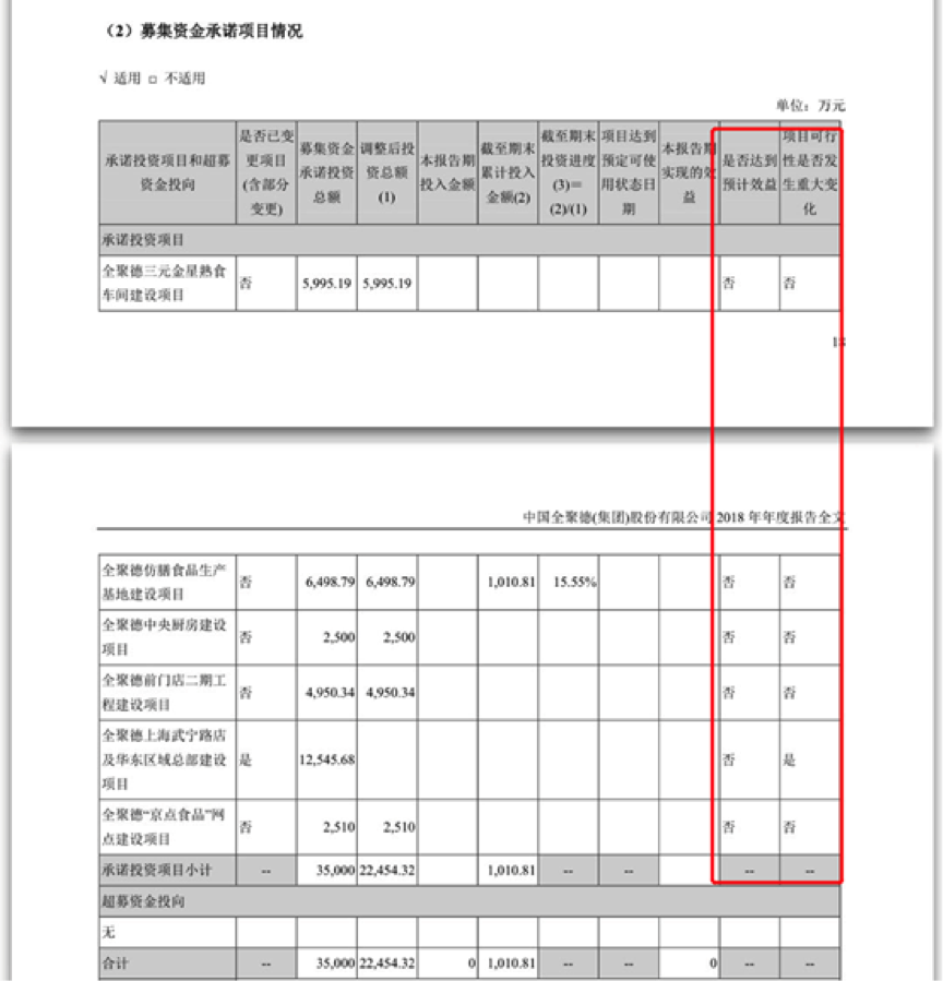 蓝鲸产经记者查询齐散德2018年财报发明,此前定删3.5亿元的募投项目无一到达预期效益。数据显现,停止2018年末,该公司方案用于投资生食车间、消费线及新店扩大等五个项目标3.5亿元资金,除实践乏计投进的1011万元,其他召募资金不断正在吃银止利钱,至古达3.81亿元,仅比当初召募资金略下。