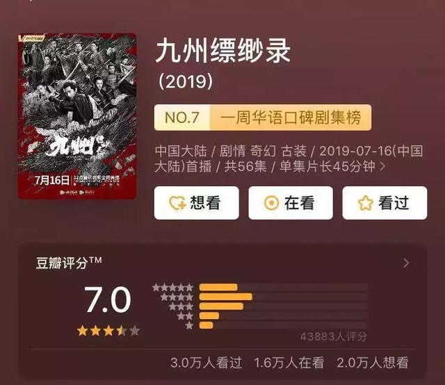 《九州缥缈录》除老戏骨的演技+流量明星的催化,那部剧是将狂家取细致的视觉感跟尾得十分美好。