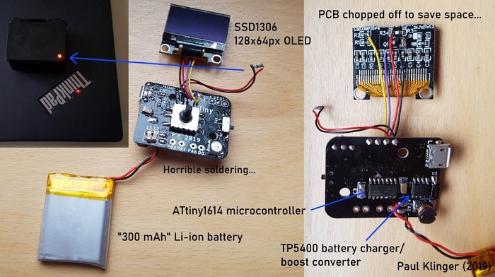 继微型游戏机等项目以后,出名 DIY 兼计较机发热友 Paul Klinger 近来又将目的瞄背了 ThinkPad,挨制出了一台可正在指尖上运转的“ThinkTiny”条记本。即使云云,该机借是装备了 128×64 像素的 OLED 显现屏、传统七止键盘、TrackPoint 辅导杆、20MHz 的 CPU、和 300mAh 的电池。