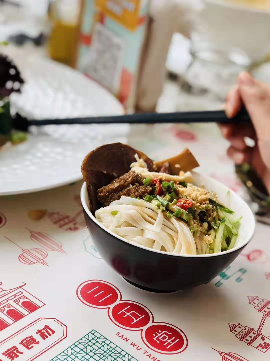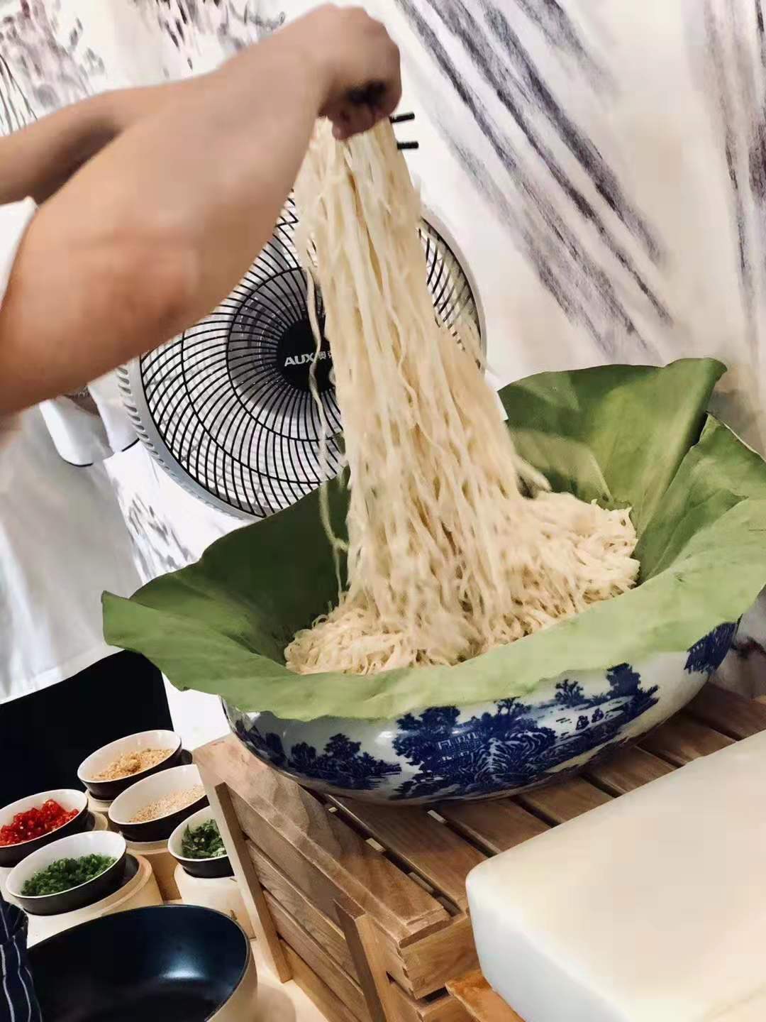 “正在老北京,吃凉里先用凉黑开过火,正在把里条放进冰箱里热躲一下。讲求人家会用电电扇吹,边吹边抖搂,把里条吹个透心凉,吃起去更喷鼻”,下姐道讲。以是为了复原北京最隧道的服法,三五堂借出格安排电电扇,把最本初的造做脚法展示正在来宾前。